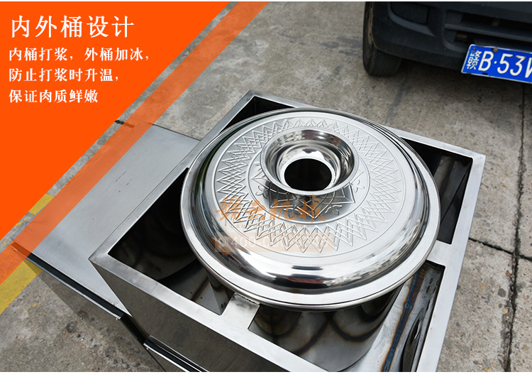 贛云牌全不銹鋼慢速魚丸、肉丸打漿機采用優質不銹鋼材質,通過大皮帶輪減速帶動打漿機刀片打漿,通過慢速拍打,使肉漿更具有彈性和韌性。適合魚丸、牛肉丸和貢丸的制漿之用。