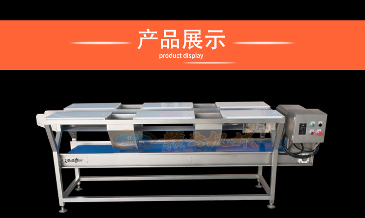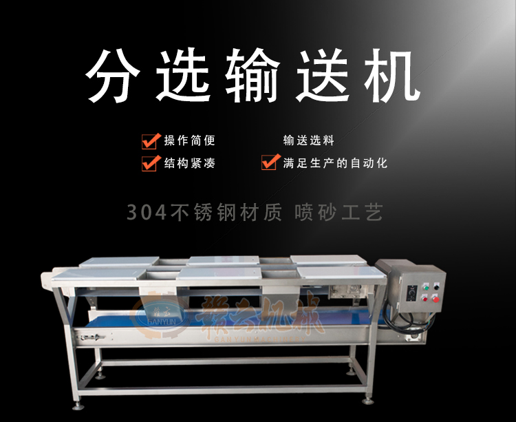 贛云牌FX-08型雙層挑選機,也叫分選機,模擬手工前期挑選工序設(shè)計二次,操作臺有上下分選輸送帶,上輸送帶將物料輸出至切菜機內(nèi)進行切割工序,下輸送帶將廢料輸送至另一端收集出來。亦可根據(jù)客戶需求定制多層分選,定制加長加寬,以符合中央廚房加工需求之用。咨詢電話400-000-9346