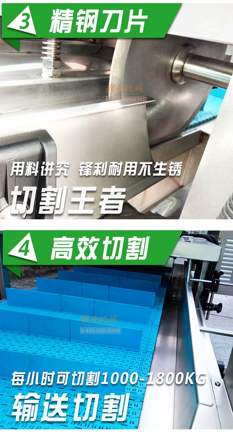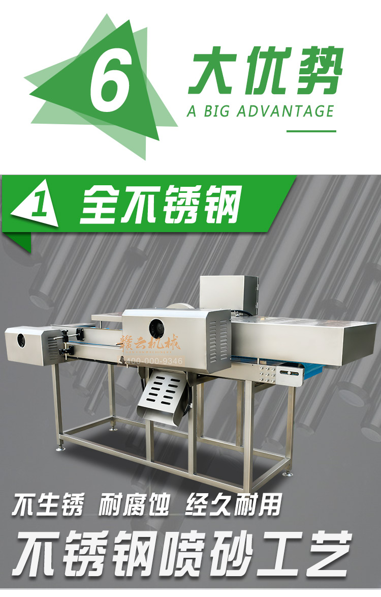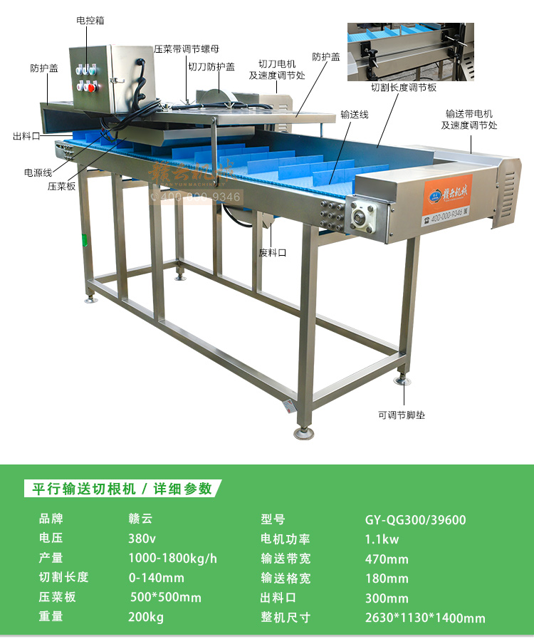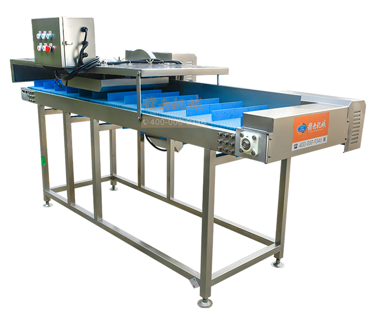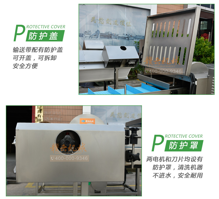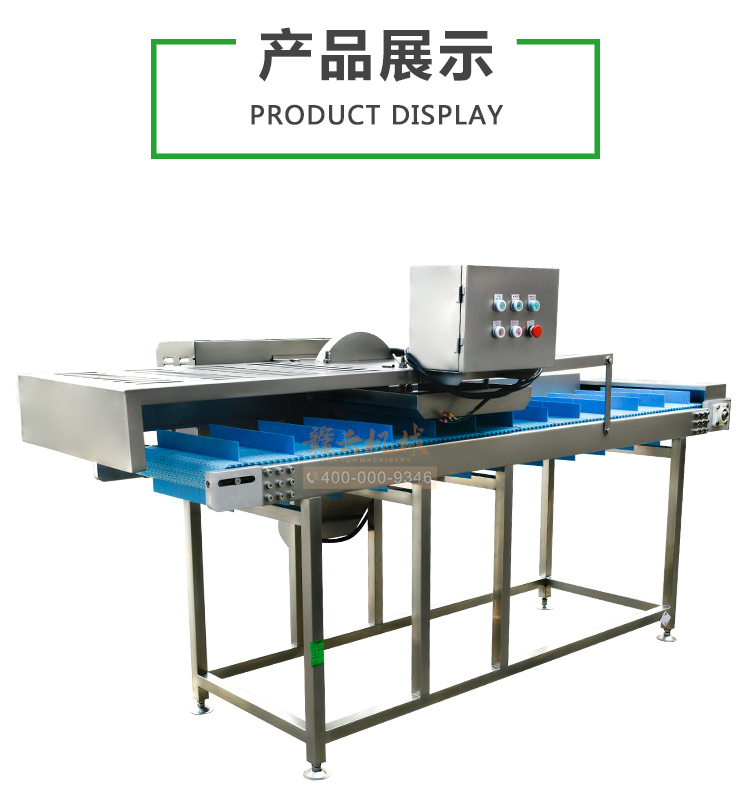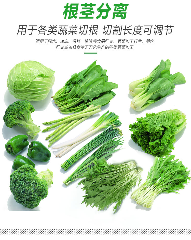 平行輸送去根機(jī)由輸送板帶動(dòng)物料前行,蔬菜經(jīng)過(guò)固定位置的刀盤后,蔬菜根部被切割從廢料口出來(lái),保留的蔬菜則向前輸送。切割的長(zhǎng)度可以調(diào)節(jié),每顆蔬菜所切割出來(lái)的廢料都相等。去根機(jī)適合大型食品加工廠、凈菜生產(chǎn)線等。