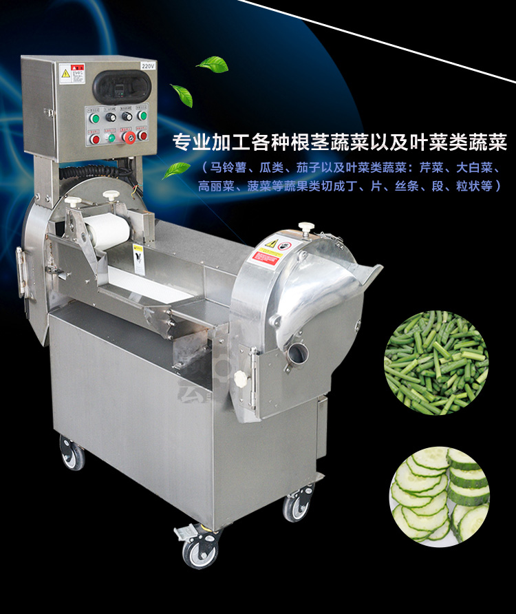 用途:將根莖類蔬菜:馬鈴薯、蕃薯、瓜類、竹筍、洋蔥、茄子以及葉菜類蔬菜:芹菜、大白菜、高麗菜、菠菜等蔬果類切成丁、片、絲條、段、粒狀。