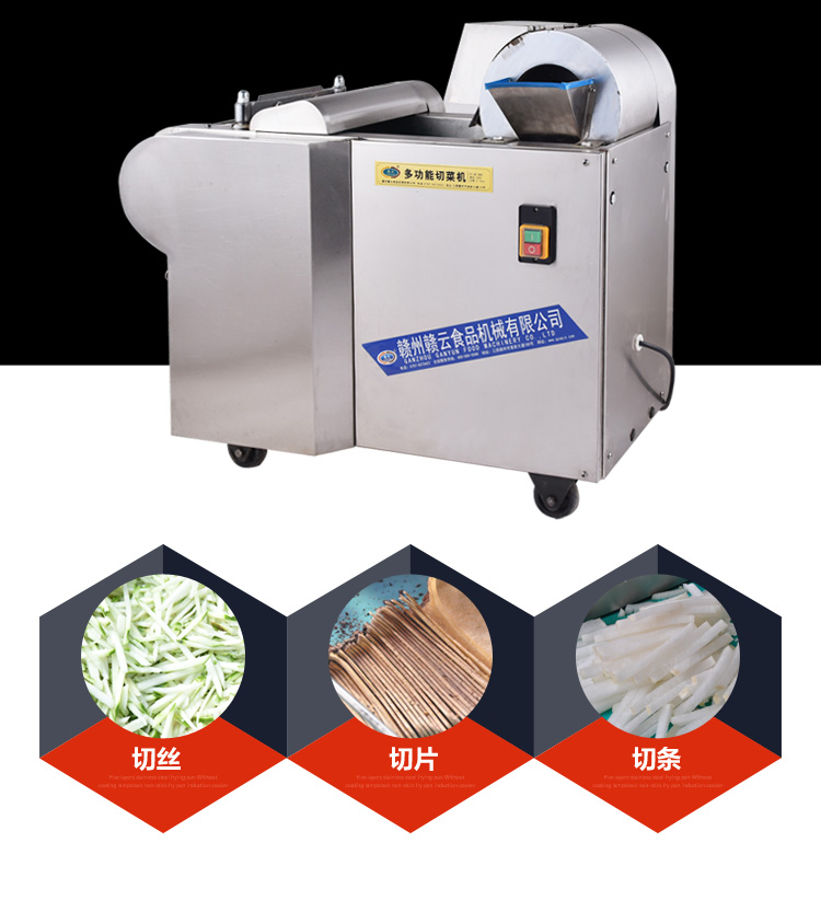 2015年新款加厚型切菜機是我廠經過多年的切菜實踐經驗和客戶反饋等綜合信息考慮設計而成的,比原來的880型切菜機加厚板材,并配用全銅芯超穩定型電機。保證產品質量的同時,使得產品外形更加美觀,更顯不銹鋼檔次。一小時可切600公斤蔬菜,切菜厚薄可調0-20mm,切片厚薄可調0-10mm,模擬手工切菜原理設計而成,采用輸送帶完美配合離心切片機構和豎刀切菜機構,運用手壓原理將切切成有規則的,間隙均勻的片、丁、絲、條等狀。