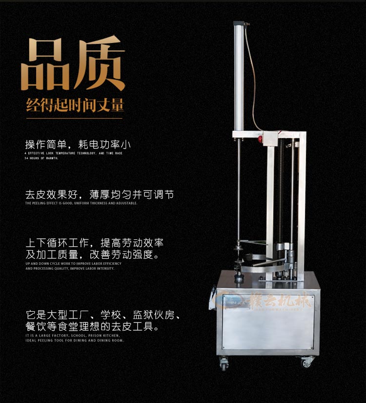 電動(dòng)不銹鋼大型瓜果去皮機(jī)適用于木瓜,南瓜,冬瓜,哈密瓜,柚子等大中型瓜類削皮,削皮厚薄可調(diào)。刀組上下循環(huán)削切效率高,去皮率高達(dá)95%以上。削皮刀架特殊設(shè)計(jì),可使瓜皮定向排出,方便收集清理。機(jī)器拆洗方便,使用時(shí)操作簡(jiǎn)單,清洗方便,安全衛(wèi)生。去皮機(jī)適用于餐飲行業(yè),飯?zhí)茫称芳庸S,冷凍食品廠,休閑食品廠,西餐店設(shè)備,飲品店設(shè)備,茶餐廳等。防水開關(guān),可調(diào)厚度,鋼質(zhì)刀片耐用不生銹。它是大型工廠、學(xué)校、伙房等食堂理想的去皮工具。