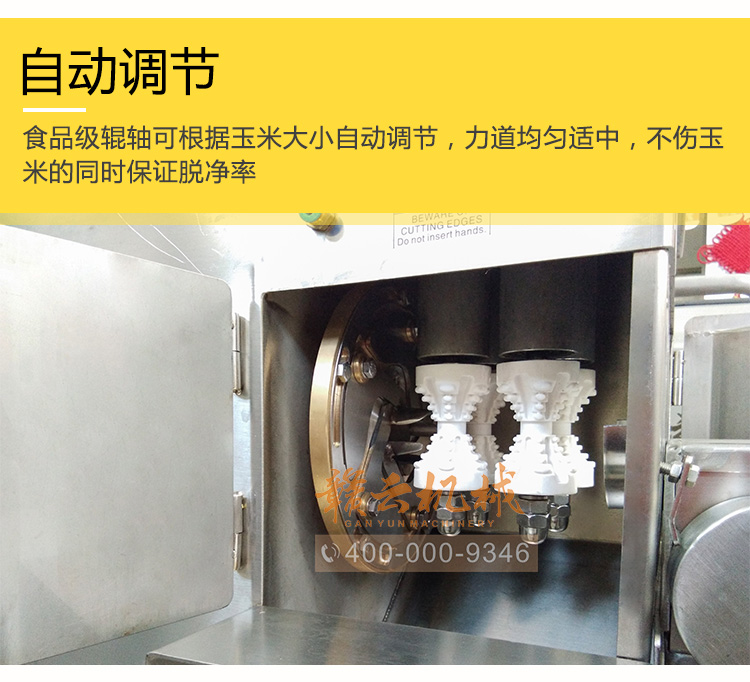 脫凈率高——可根據(jù)玉米棒大小自動調(diào)節(jié),適合各種大小玉米的脫粒,脫粒深淺可調(diào),甜玉米剝凈率可達(dá)100%。