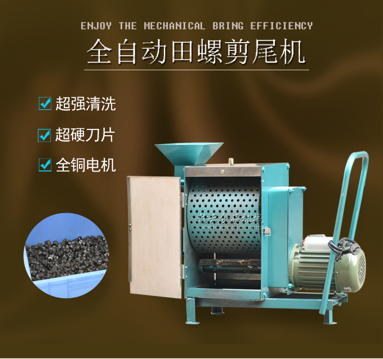 新款全自動田螺剪尾機GY-TL-450解決了田螺剪尾難的問題,從田螺-剪尾-清洗一次性完成,省時省力,方便快捷,深受田螺加工客戶青睞。