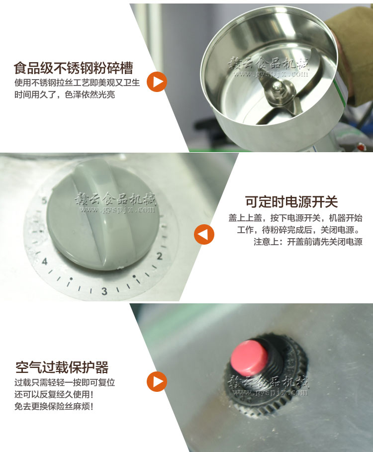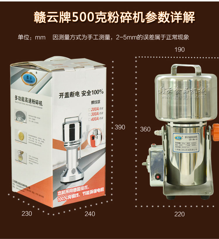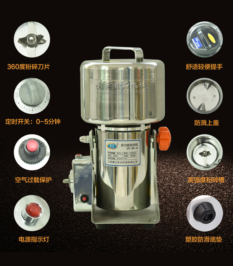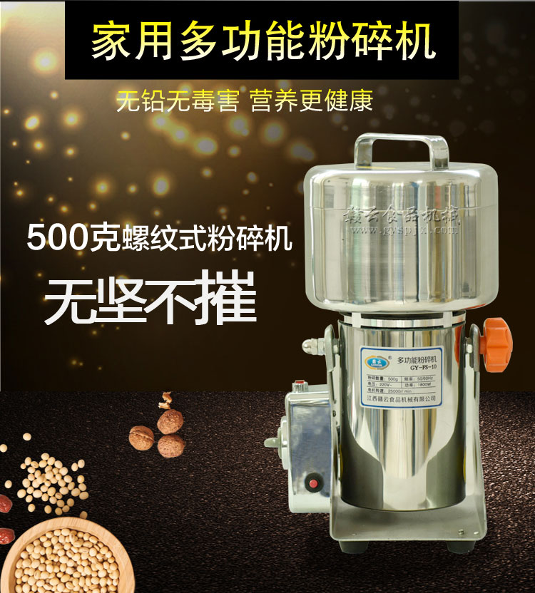贛云系列多功能粉碎機(jī)采用純銅高速電機(jī)帶動粉碎刀片將物料快速打成粉末,可用于粉碎五谷、雜糧、田七、阿膠、白叁等,一般粉碎時間1-2分鐘即可,新款粉碎機(jī)改保險絲為空氣過載保護(hù)器,使用更安全,我廠提供的粉碎機(jī)有100克-1000克不同型號的多功能粉碎機(jī)。
