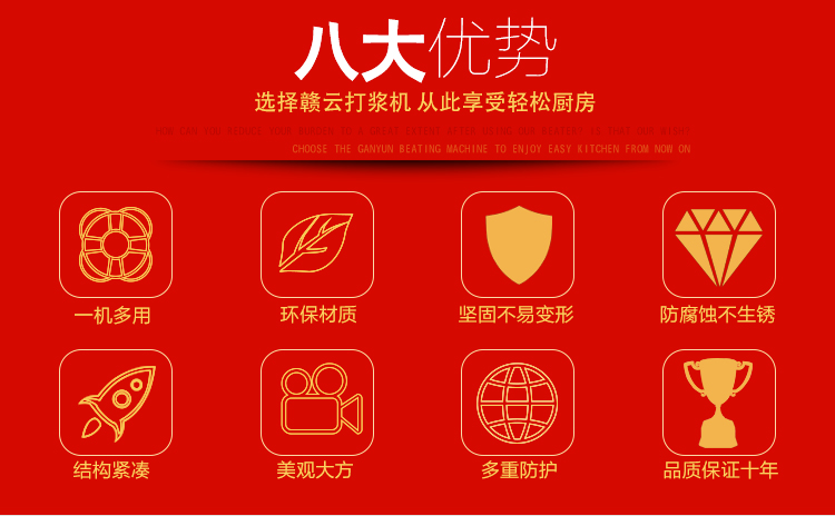贛云牌新款全不銹鋼肉丸機,22型肉丸機采用全不銹鋼材質,在舊款全不銹鋼肉丸機的基礎上給支撐架加粗加厚,用不銹鋼蓋,打漿雙桶,刀柄刀片均采用不銹鋼材質。打漿桶裝肉量2l,一次可打肉漿4斤左右,采用2800r/min高速電機,故稱之為高速肉丸機。
