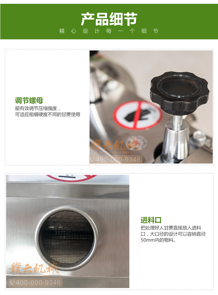 本廠生產的榨液機可以榨甘蔗、生姜汁做姜糖,生姜液調蛋是婦女的補身佳品,生姜液調味做面條能開胃口。