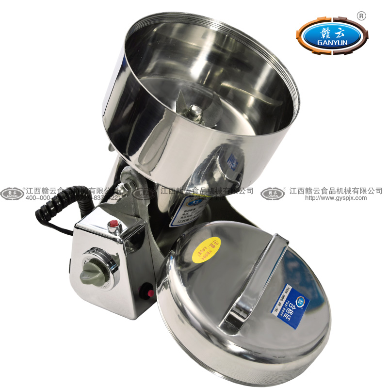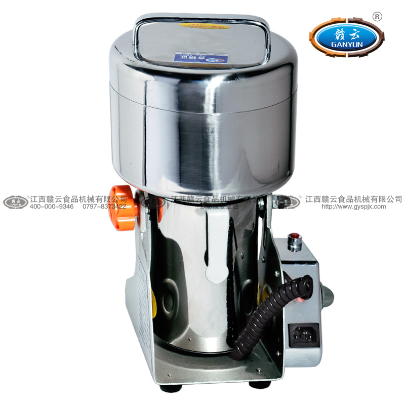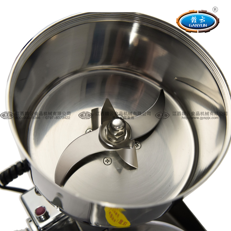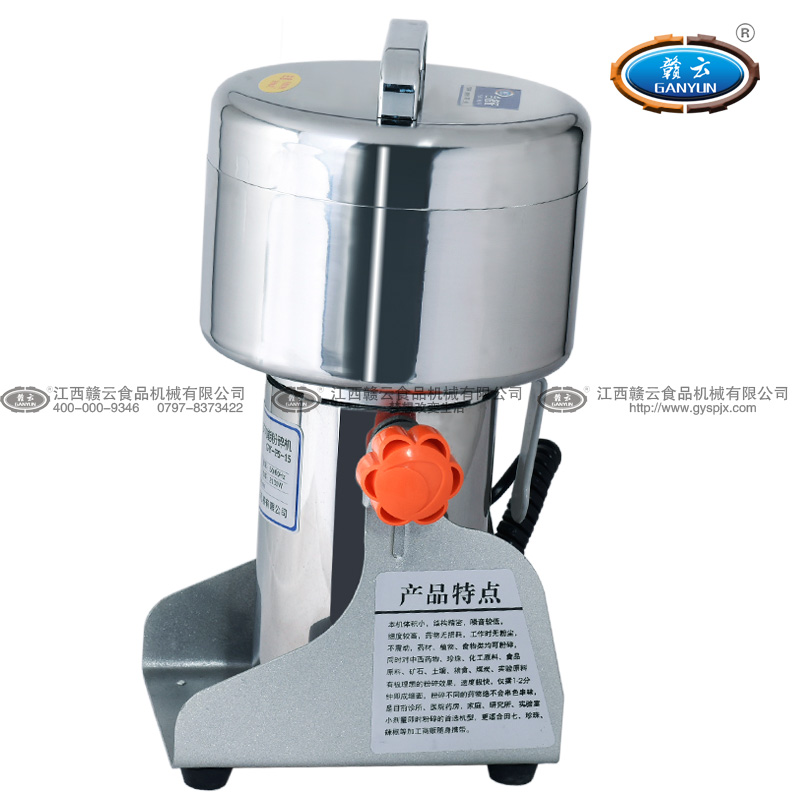 贛云FS系列多功能家用商用粉碎機,主要用于五谷粉碎五谷、雜糧、田七、 阿膠、白叁等材料的粉碎,采用超高速優質純銅電機,核心動力強勁,功率十足,有效保 證了產品質量的穩定性,食品級不銹鋼粉碎倉內由原來的雙刀片升級為三刀片,意味著每 分鐘同比增加了5萬次的粉碎效率,達到粉碎無死角,粉碎更細膩,大大縮短了物料的粉碎 時間,同比時間粉碎效果更細膩,原過載保護保險絲升級為空氣過載保護器,過載只需輕 輕一按,方便快捷,更有效的保護了電機。