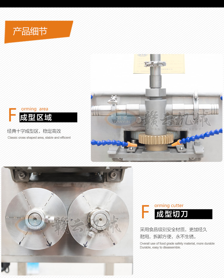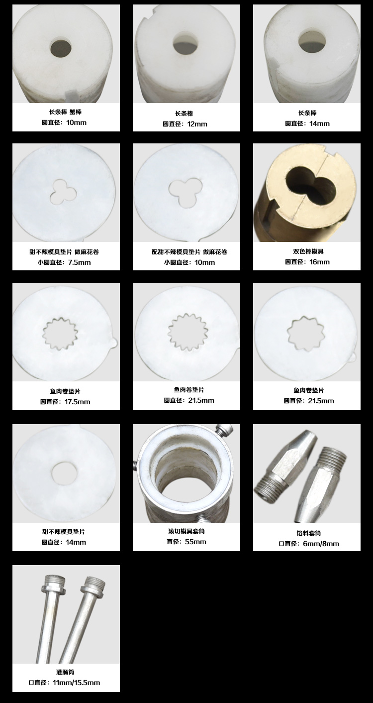 多功能火鍋丸子成型機用于配合泵浦灌腸機制作海螺丸造型和其他不規則造型火鍋料丸子設備。隨機有十多套模具,可制作十二種形狀丸子,但是這臺設備不能單獨工作,必須配合泵浦灌腸機灌漿才能成型。配兩臺一代泵浦灌腸機可做魚排成型,配一臺一代泵浦灌腸機一臺二代泵浦灌腸機可做三色肉丸,根據客戶需要配備灌漿設備(泵浦灌腸機) 。