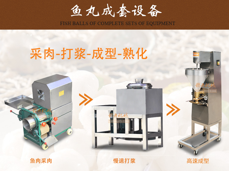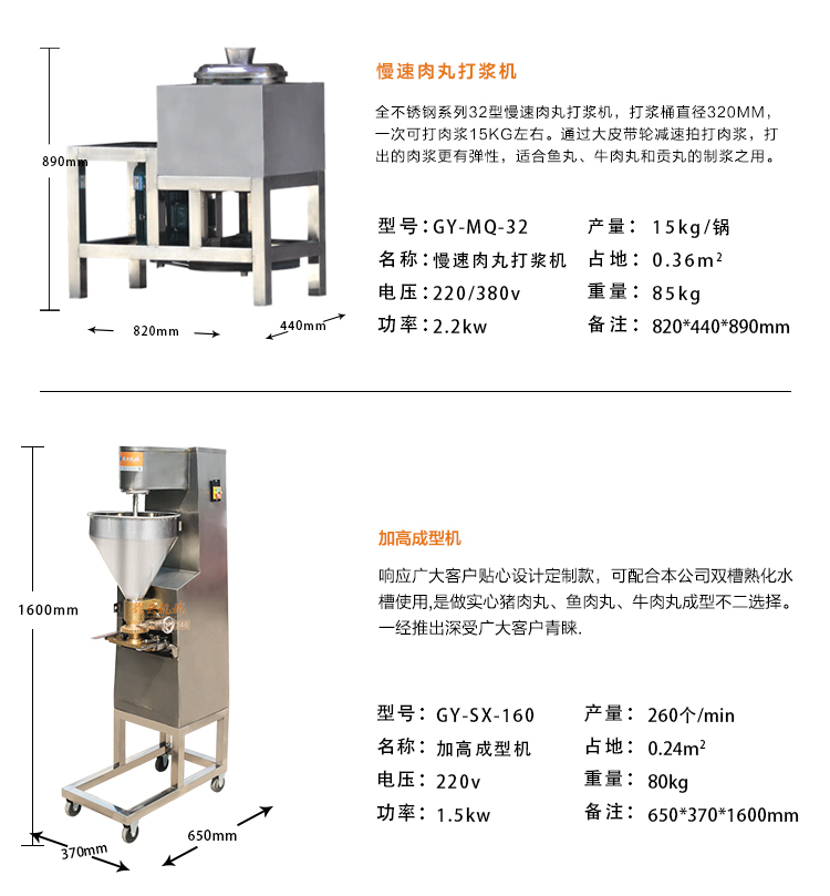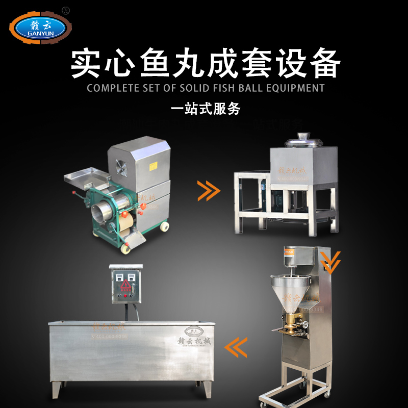 GY-CT-006型實心魚丸成套設備由:新款160型魚肉采肉機、32型慢速肉丸打漿機、160型實心肉丸成型機和1500型雙槽加熱水槽四臺設備組合而成,是小作坊式專業加工生產實心魚丸設備。
