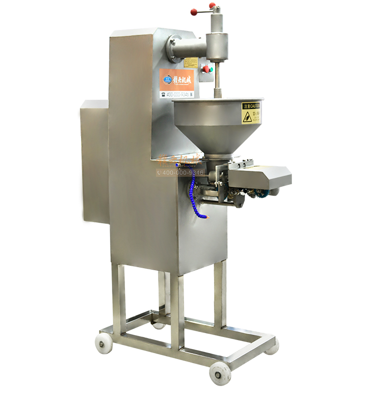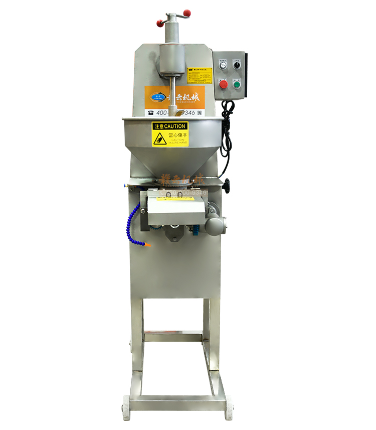 全自動仿手工擠丸挖式成型機,又稱墨魚丸成型機或高速貢丸成型機,是一款完全仿手工用匙子成型的設備。不同于普通成型機的刀片切割,用開明型鋼勺自動舀挖出丸子,做出丸子具有彈性好,圓度好、外表皮光滑或保持原漿體顆粒,還可以拔層的特點,。特別在做貢丸和牛肉丸這些有肉筋的丸子的時更能顯示其顯著的性能。