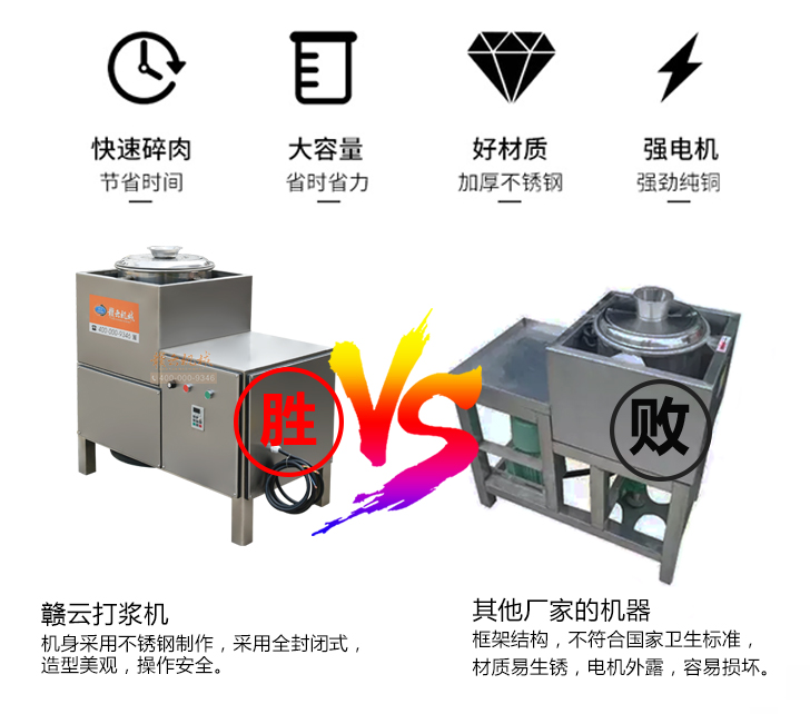 贛云牌36型全封閉式慢速變頻肉丸打漿機選優質不銹鋼,在全不銹鋼慢速肉丸打漿機基礎上將整機外殼用不銹鋼板材封裝,更好的保護電動機,通過小皮帶輪帶動大皮帶輪減速,慢速拍打肉漿。