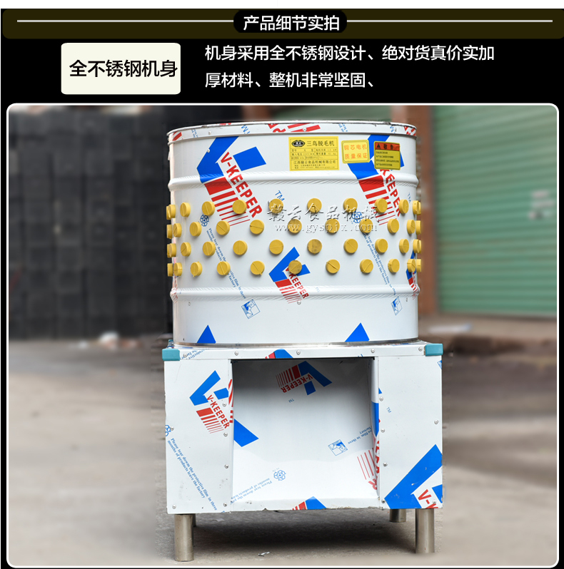家禽脫毛機有大號、小號與中號之分,采用全不銹鋼材質,加工雞、鴨、兔、鳥等禽類脫毛之用.