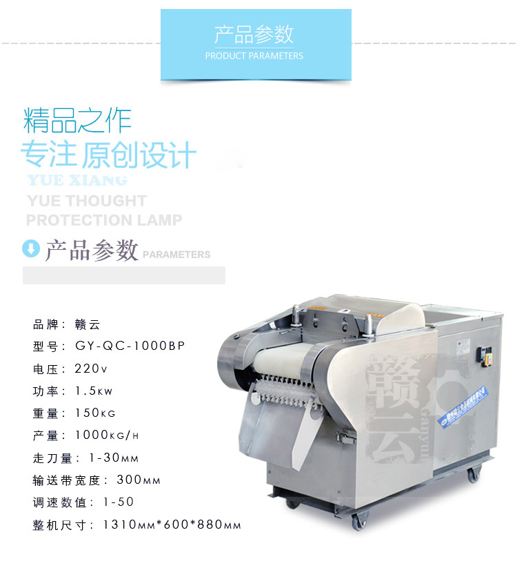 贛云續1000型切菜機的廣泛應用的基礎上,新增了加高款、加厚款、變頻款等多種款式,以解決不同客戶的實際生產需求,體現贛云品牌價值。本款為變頻調速款,在原1000B型切菜機的基礎上增加變頻器控制調節電機速度以達到改變切菜速度的效果。