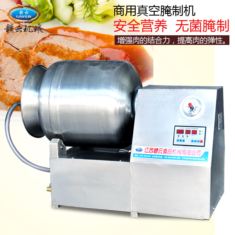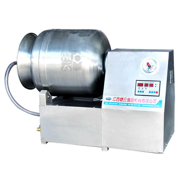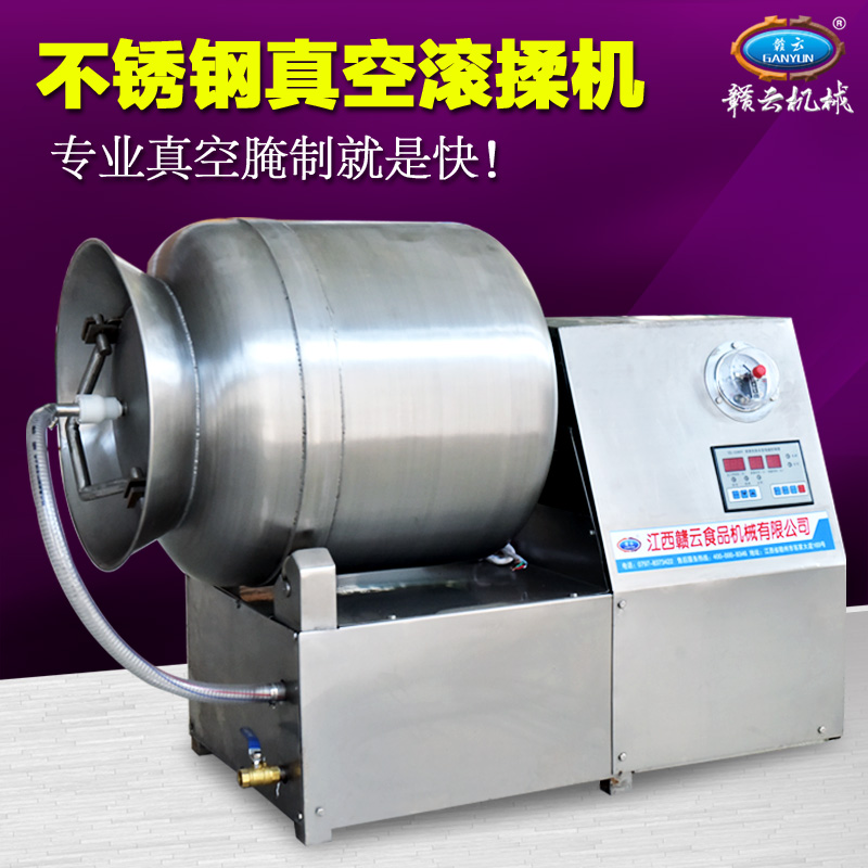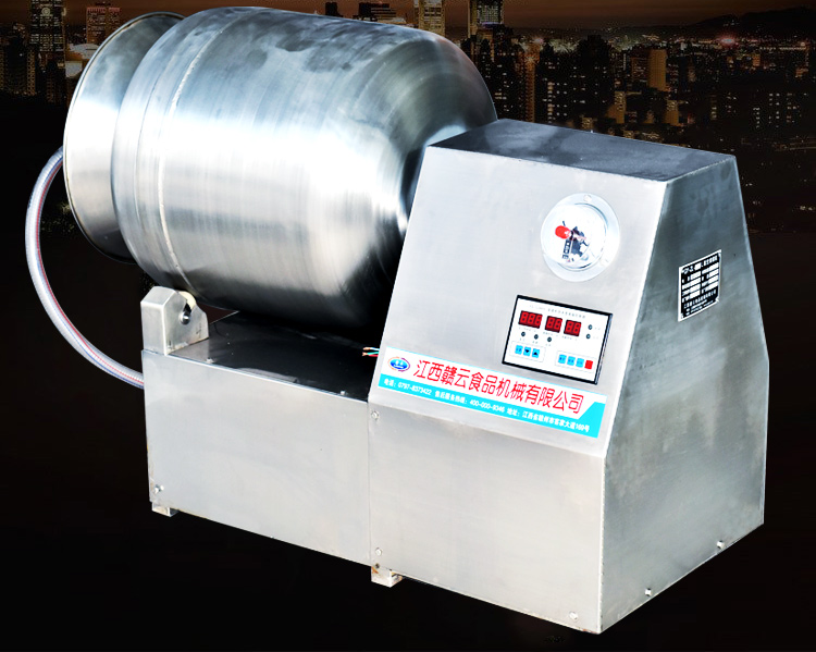 滾揉機除了能加速腌效果外,采用滾揉技術達到肉質嫩化效果的也是西式火腿加工的重要工序,然肉質在常規的滾揉機械加工過程中常常會因為摩擦滾揉升溫而容易導致肉質變質,因此滾揉的時間需要控制的十分好。贛云真空滾揉機是為了彌補常規型滾揉機的缺點而進行科學的設計,真空狀態下可以很好的保證肉質的質量,在經過微電腦控制滾揉時間,使得整個滾揉工藝變得簡單化和可快速復制性。