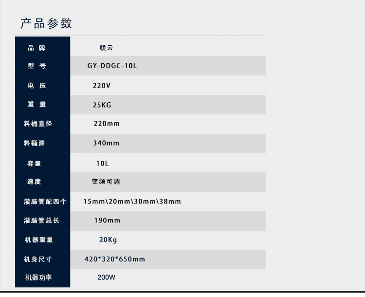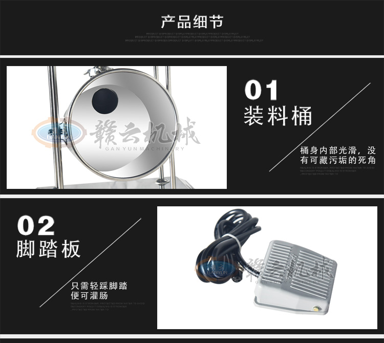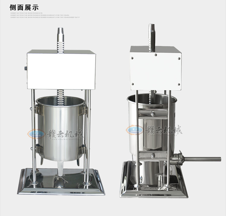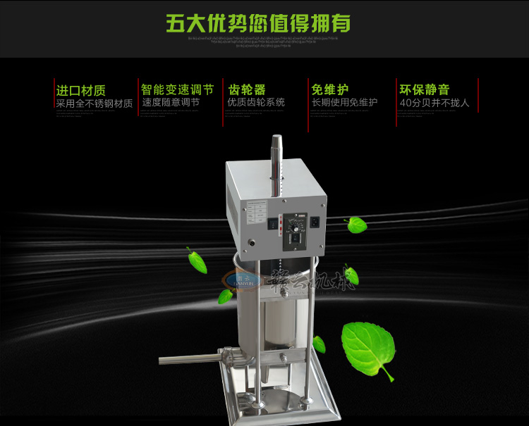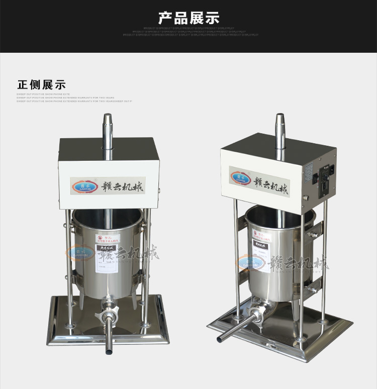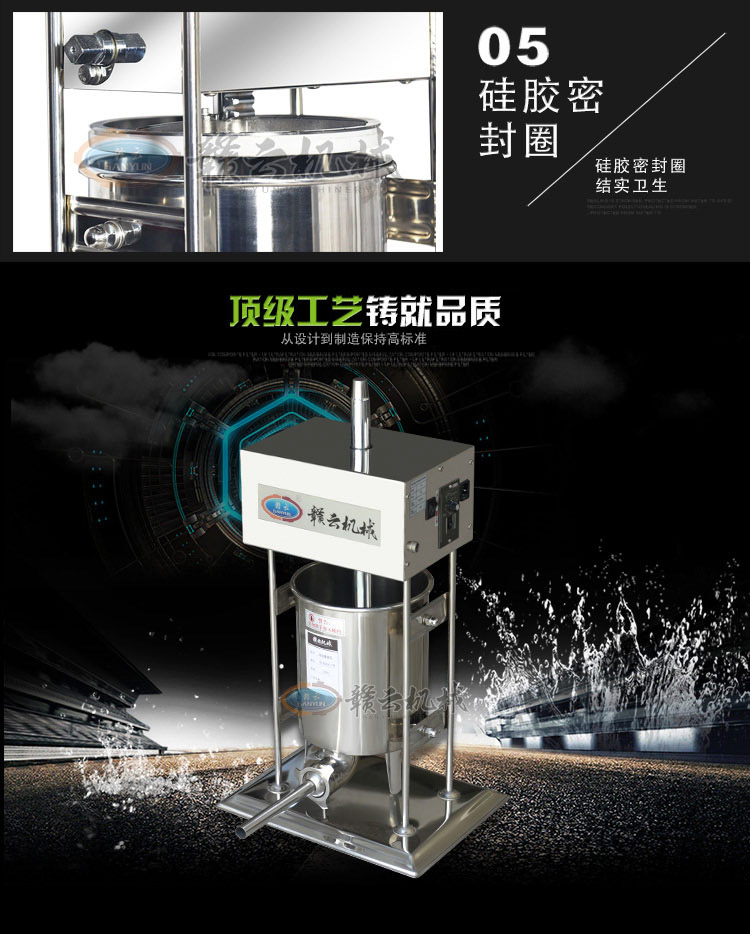 冬季灌腸新添專業(yè)灌腸設備,贛云牌立式不銹鋼電動灌腸機,專業(yè)灌制各種腸類,如臘腸、香腸、火腿腸、親親腸。變頻速度可調,灌腸讓你隨心所欲,整機采用全齒輪優(yōu)質拉桿升降系統(tǒng)設計.腳踏開關隨意控制,配合自動升降系統(tǒng)及變速可調,灌腸速度快,效果好。