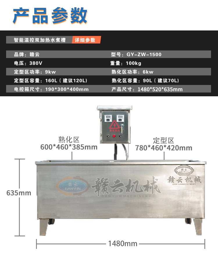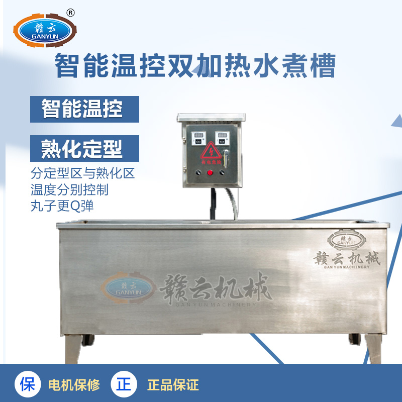GY-ZW-1500型自動恒溫定型熟化水槽,也叫智能溫控雙加熱水槽,是我公司新設計開發的,一款適用于貢丸、包心肉丸、獅子頭、墨魚丸、實心肉丸、蔬菜丸子、米果丸子等定型熟化加熱用水槽。