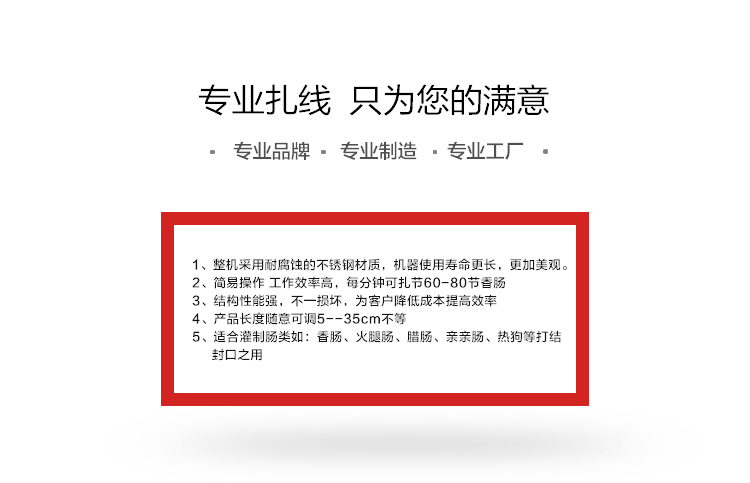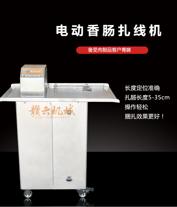電動打結機,香腸打結機,腸類自動打結設備,冬季灌腸打結好設備,香腸自動打結機,采用不銹鋼材質設計,打結長度5-35cm可自由調節。進料口直接50mm.