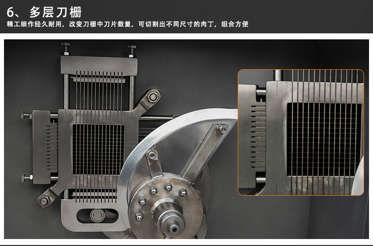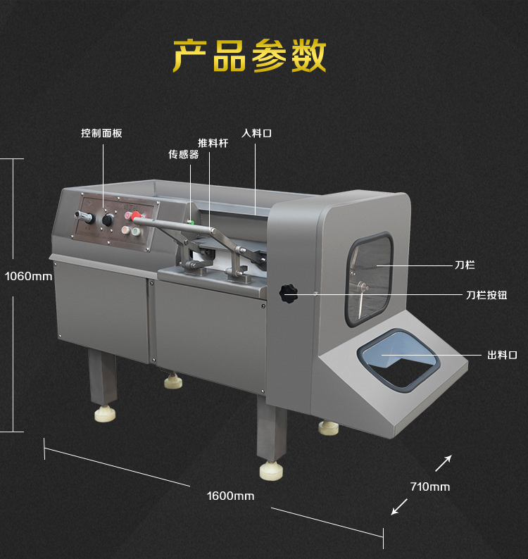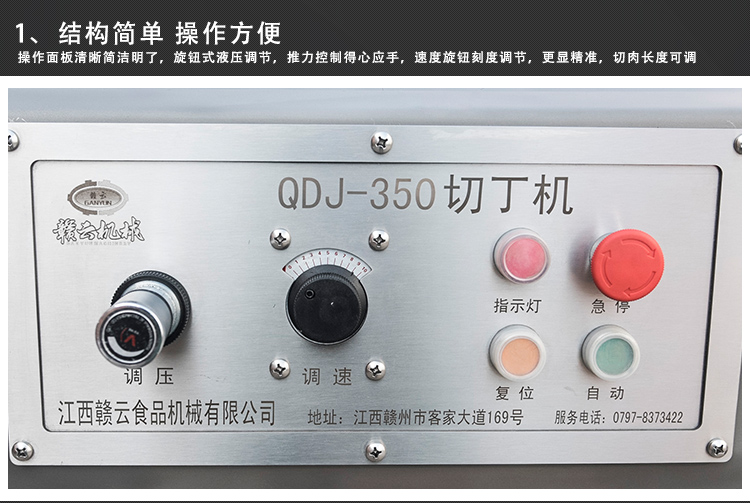 贛云350型切肉丁機(jī),采用304不銹鋼噴砂處理技術(shù),裝備優(yōu)質(zhì)刀組,利用流水線條設(shè)計,配合激光雕刻控制面板,整體外形美觀大氣。液壓步進(jìn)式推料自動切割,推料速度旋鈕可調(diào),拆增刀片可切出多種規(guī)格肉丁、肉條、肉片。是肉類食品加工切丁專用設(shè)備。