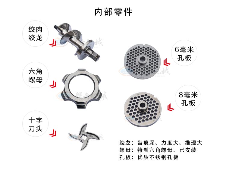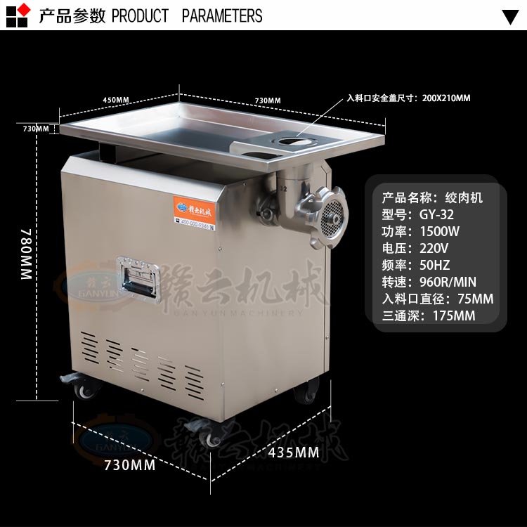 高質量高性價比絞肉機 防絞手蓋子 貼心設計 防止絞肉時傷到手指 放料托盤 包邊設計 安全放心 防水開關人性化設計  人體工程學把手 方便搬運 配有萬向輪 裝配有純銅電機