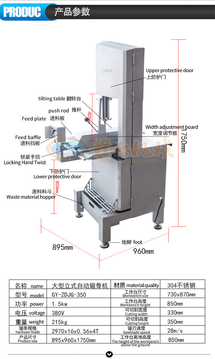 肉制品前處理->骨類加工設(shè)備->大型立式自動鋸骨機 | |||||||