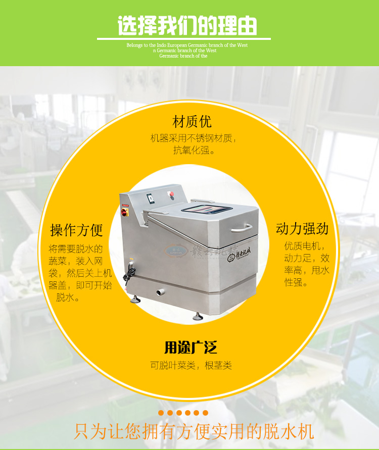 為什么要用脫水機呢?脫水機有什么用? 菜葉上有水,放兩天就焉掉發黃了,洗好的辣椒或水果,沒擦干就容易腐爛。大容量脫水機,蔬菜加工好幫手,甩水性強,動力足,效率高。將需要脫水的蔬菜,裝入網袋,然后關上機器蓋,即可開始脫水。可脫葉菜類,根莖類蔬菜。 洋椒干的做法 1、將洋椒洗干凈。 2、洗好的洋椒放入脫水機進行脫水 3、脫好水的洋椒,放入烤箱,小火慢烤 4、將烤好的洋椒,裝入盤中,撒上調味料即可。