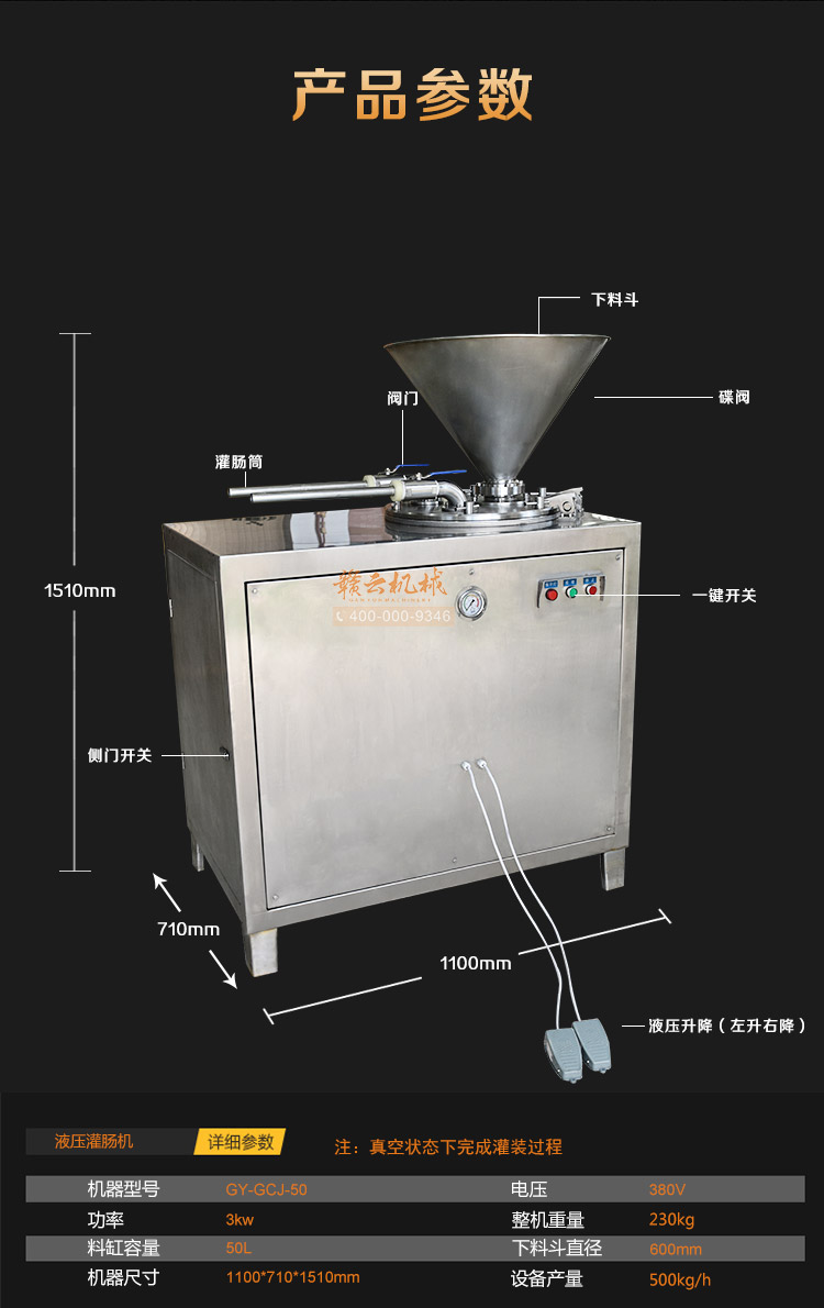 主頁-> 肉制品前處理->專用灌腸設備->50升液壓灌腸機