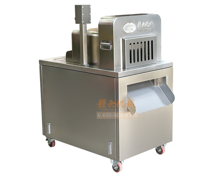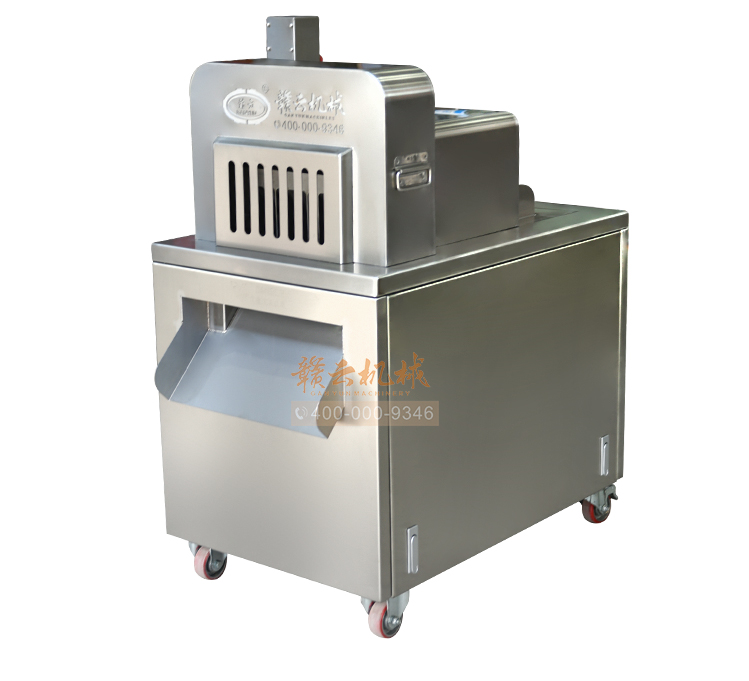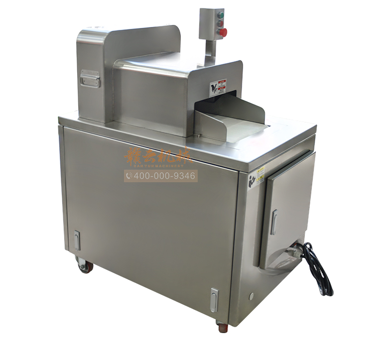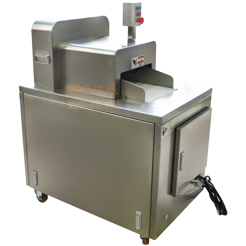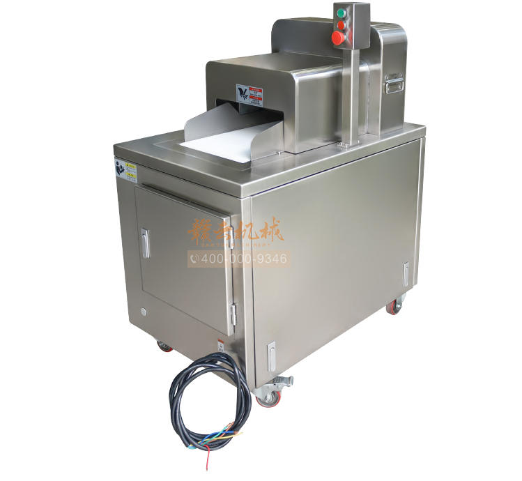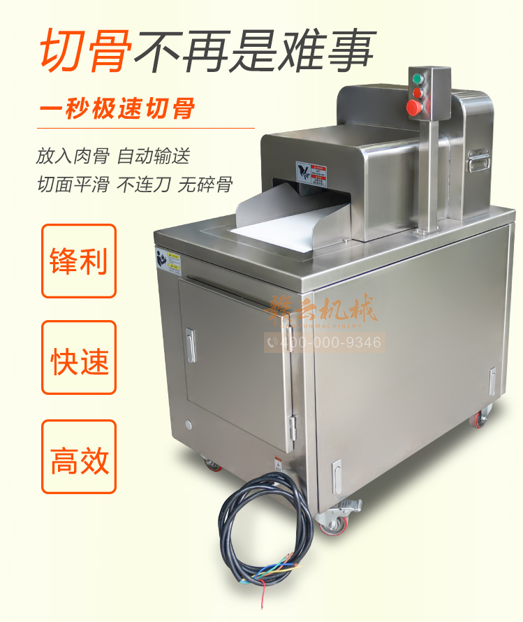 本機是切斷各種動物骨頭及帶肉骨頭的機器,可切凍肉,凍骨,凍魚等較硬食品,還可以完全切斷新鮮的帶肉骨頭,鮮肉 家禽 不連刀無碎骨。整機采用全不銹鋼護罩,干凈衛生,清洗方便;電機帶動,每分鐘可切83次,效果高效,而且全自動送料,安全可靠。