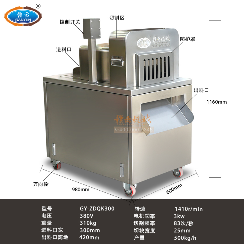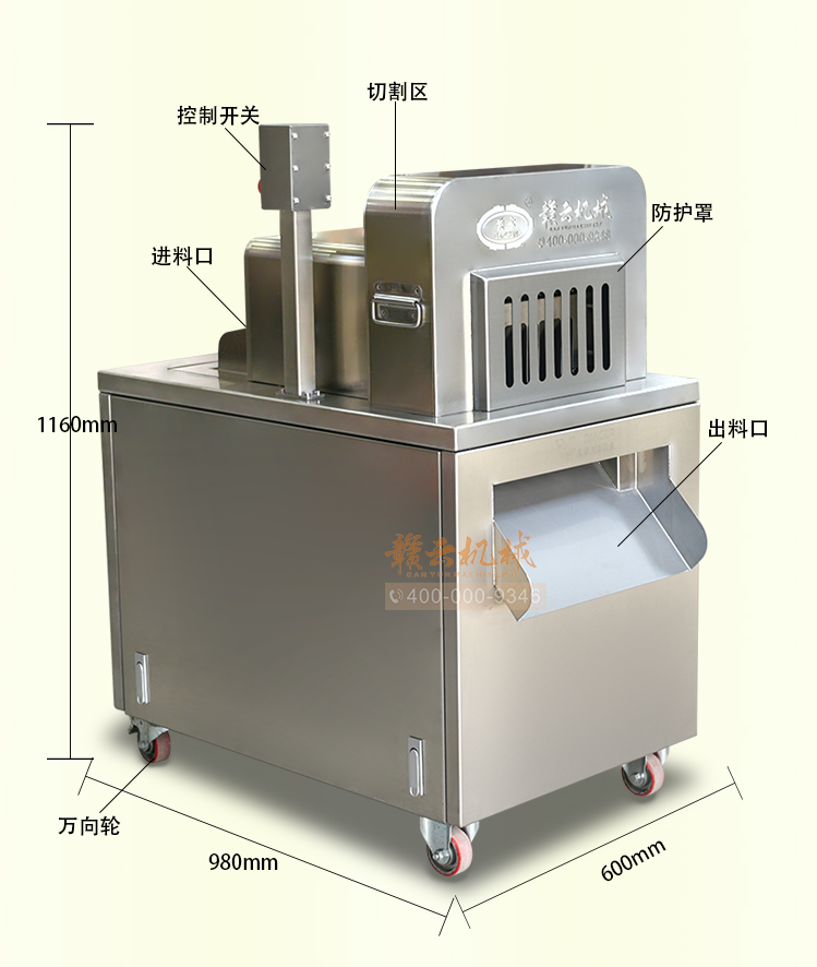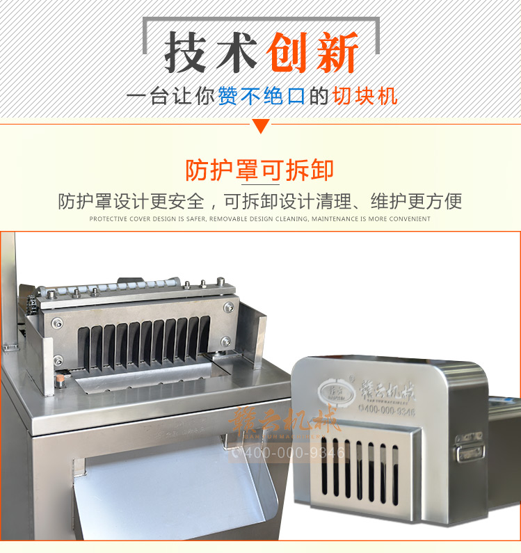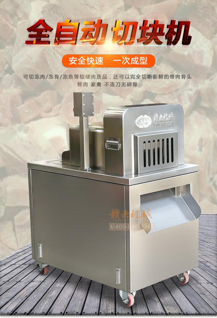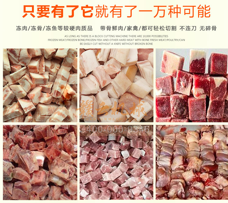 本機是切斷各種動物骨頭及帶肉骨頭的機器,可切凍肉,凍骨,凍魚等較硬食品,還可以完全切斷新鮮的帶肉骨頭,鮮肉 家禽 不連刀無碎骨。整機采用全不銹鋼護罩,干凈衛生,清洗方便;電機帶動,每分鐘可切83次,效果高效,而且全自動送料,安全可靠。