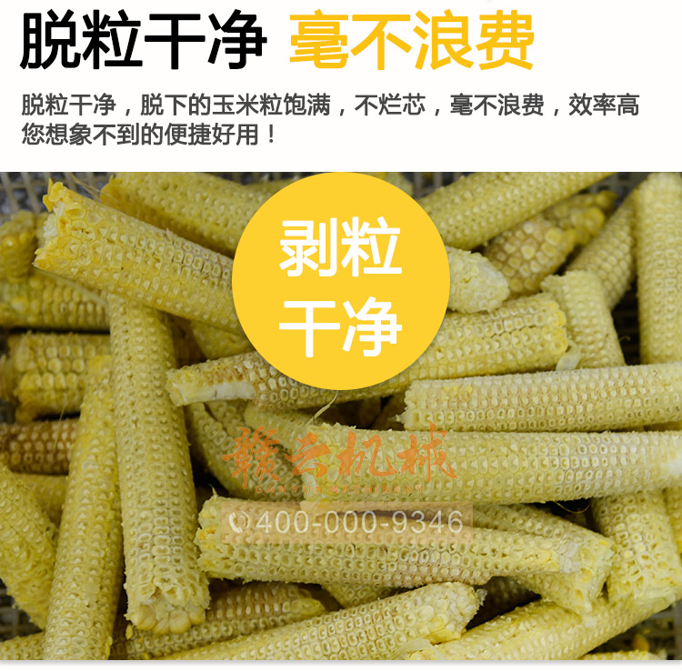 脫凈率高——可根據玉米棒大小自動調節,適合各種大小玉米的脫粒,脫粒深淺可調,甜玉米剝凈率可達100%。
