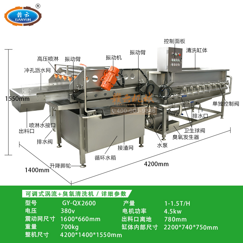 主頁-> 果蔬加工機械->凈菜加工設備->可調式渦流+臭氧清洗機