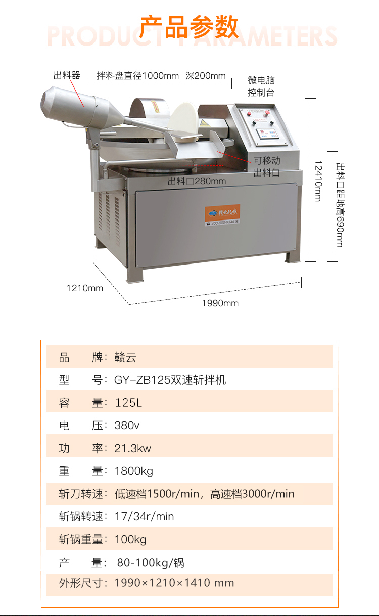 主頁-> 肉制品前處理->斬拌滾揉設備->125雙速斬拌機