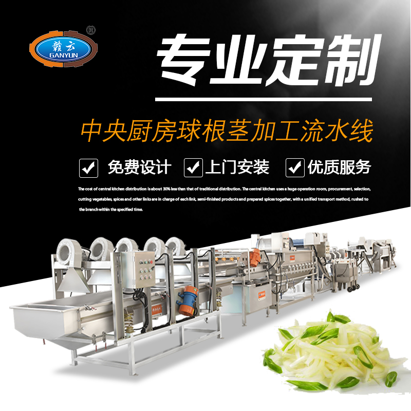 球根莖瓜果處理流水線,實現瓜果類食品從挑選清洗到切割成品風干整個自動化流程,特別適合中央廚房打造機械快速化自動設備。