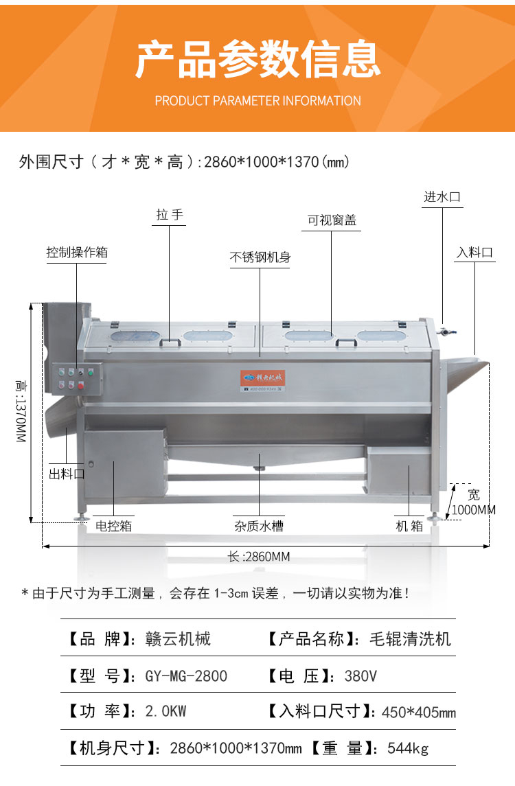 2800型螺旋毛滾清洗機
