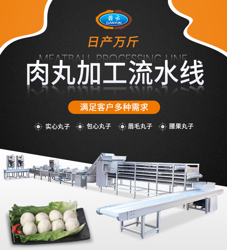 整套肉丸生產流水線設備自動化程度高,加工量大,非常適合食品加工廠,肉丸生產企業使用,我公司可以根據您的需求定制各種規格的機器設備。整條流水線可以生產肉丸,雞肉丸,墨魚丸,牛肉丸,魚丸等丸子,多功能加工設備。