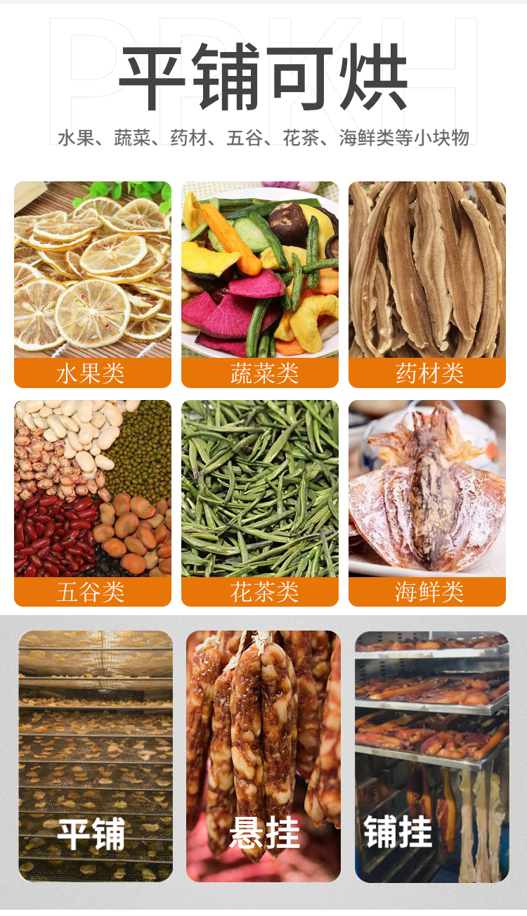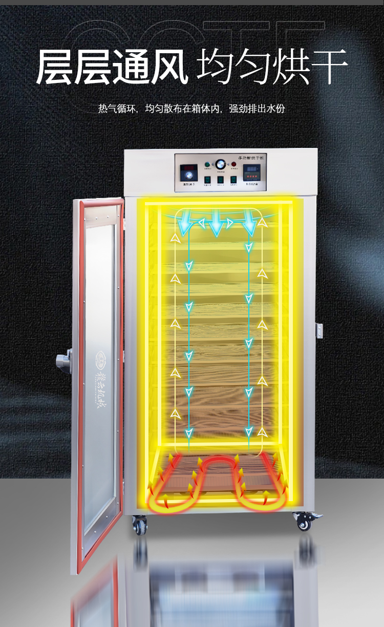 商用多功能烘干機,你知道嗎?有這樣一款多功能烘干機,它可以針對肉制品:臘腸、臘肉、板鴨等,也可以針對芒果烘干、干果烘干、蔬菜烘干等多種不同食材烘干,使用不銹鋼材質,使用大風機散熱讓機器360度立體烘干。