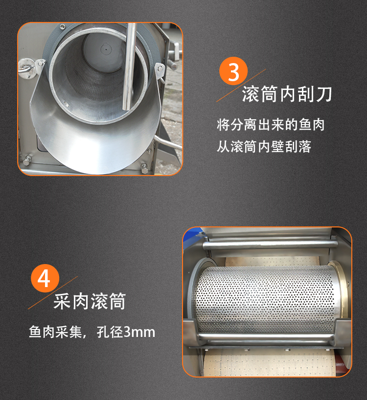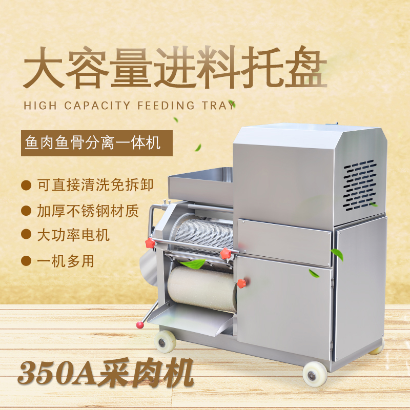 贛云牌350A型魚肉采肉機主要用于將魚刺、魚皮、魚筋和魚肉進行擠壓分離,達到提取魚肉為主要目的的前期處理設備。