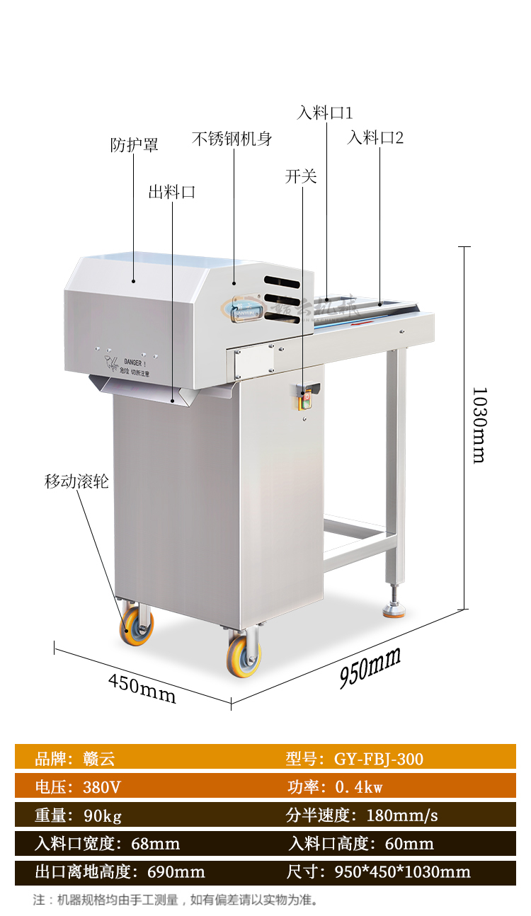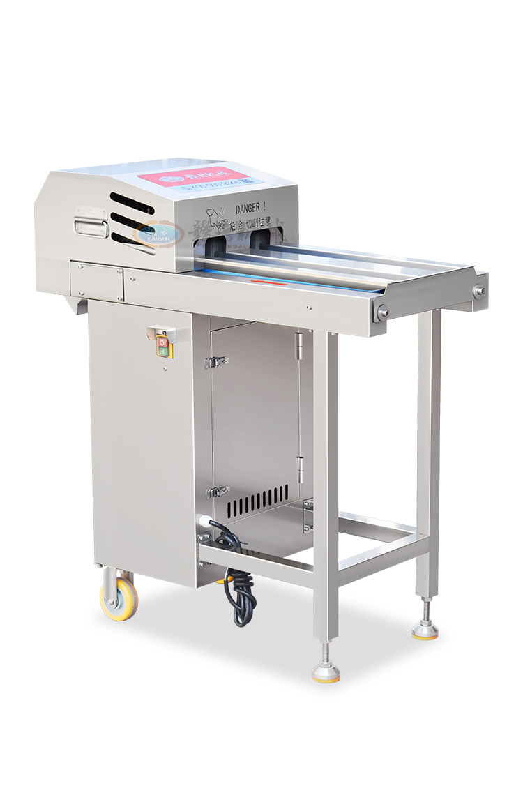 贛云雙路連續式分半機,機器采用不銹鋼材質,輸送帶雙通道設計,機器擁有自動定位物料對中夾持功能,防止物料跑偏,切出來的物料兩半均勻,效果好。 機器采用人性化設計,無論是入料和操作面板,無需要經驗都能輕松駕馭。機器適用于雞爪、鴨頭、鵝頭、海參、魷魚頭、胡蘿卜、豬喉等對稱分半加工,切割效率高,分半均勻,切面平整效果好。需要了解鴨頭切兩半設備、連續式劈半鴨頭雞頭機、微凍鴨頭鹵鴨頭切半的機器、雞頭鵝頭切半機、連續雞爪子切半機機器、檸檬風爪加工設備等,可以聯系贛云機械。