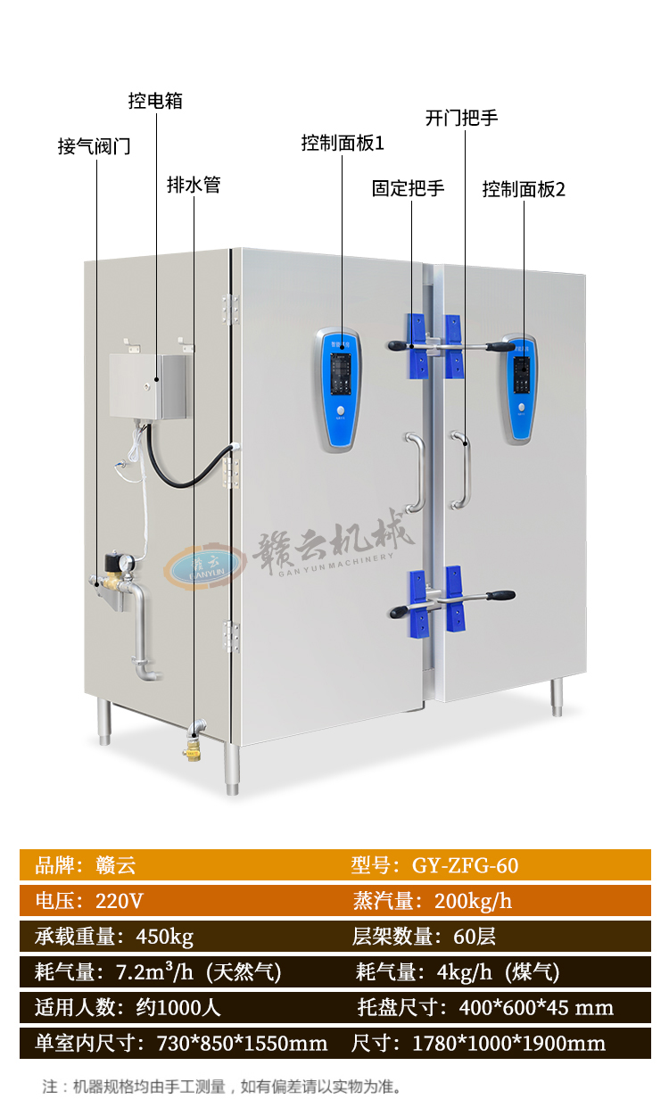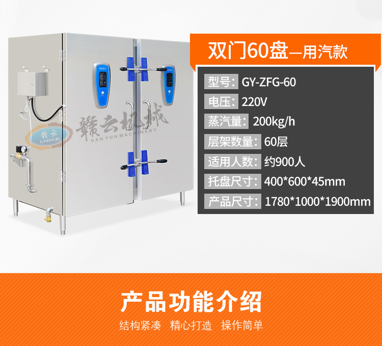 中央廚房設(shè)備->米飯?jiān)O(shè)備->雙門(mén)智能蒸房(60盤(pán)) | |||||||