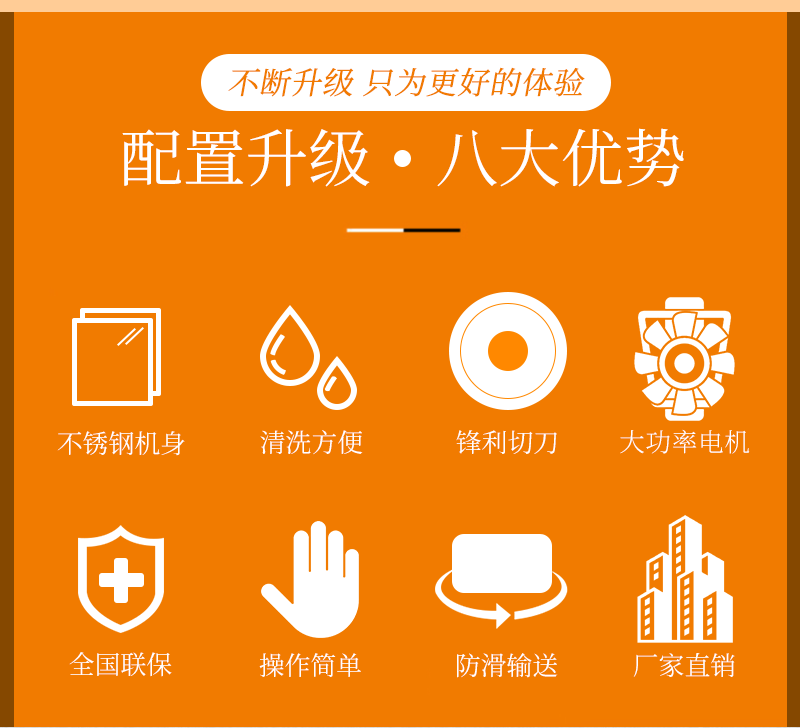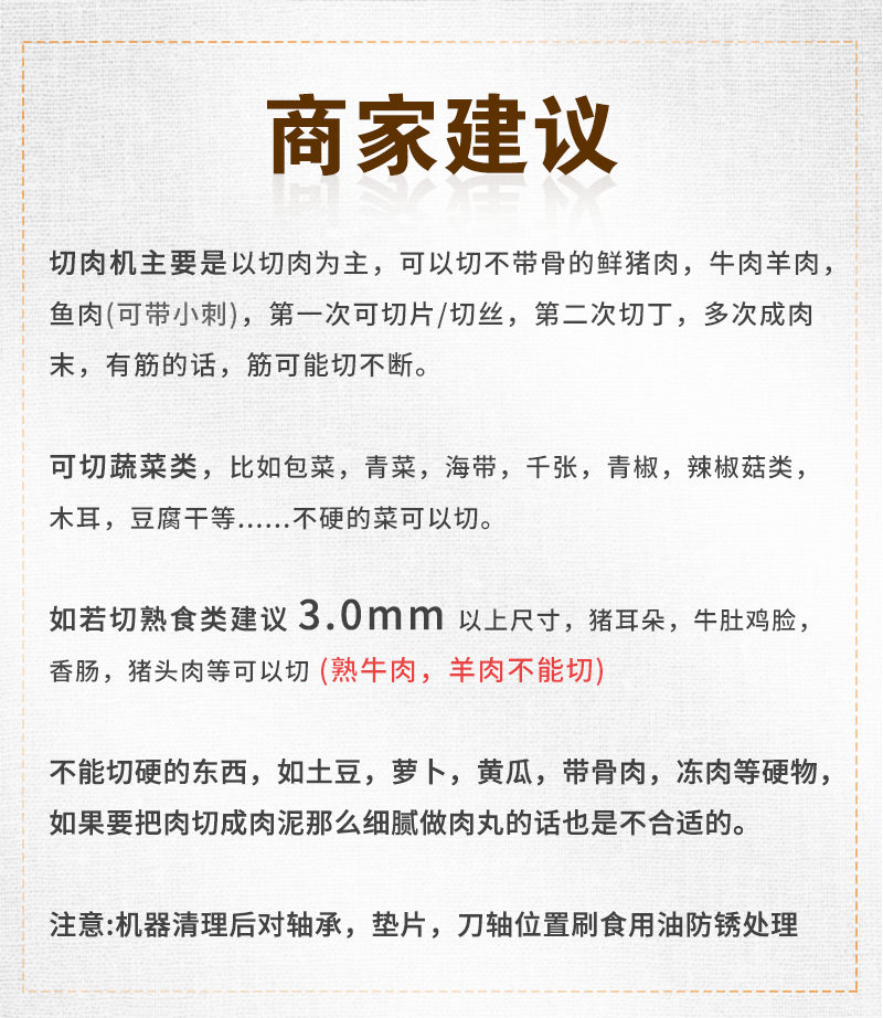適用于鮮肉、軟蔬菜等切片、切絲、切末等。