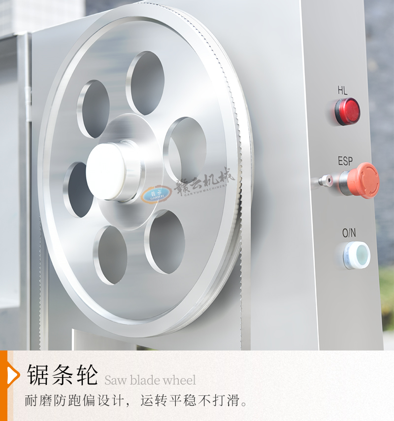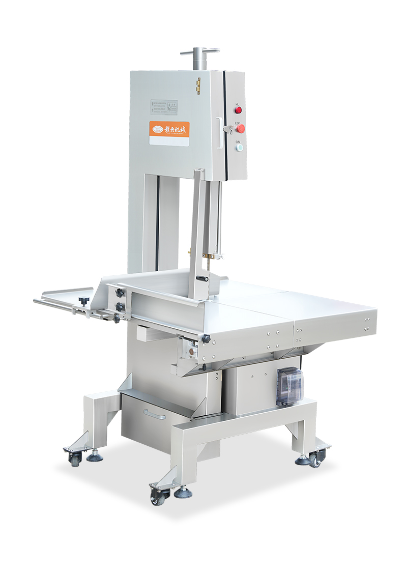 贛云機械旗下全自動大型商用鋸骨機設備,采用304不銹鋼材質,具備大容量工作臺、操作簡便、高效率的切割、采用可滑動的臺面助推和其它多種推料設計,讓機器更安全。鋸骨機適用于大型食品廠、水產加工企業、肉類加工企業、大型屠宰廠、中央廚房等場所。能對凍肉、硬骨頭、冷凍魚、豬腳、排骨、羊蝎子、豬頭、牛頭等快速精準切割。我廠的鋸骨機設計人性化,以安全、衛生、易于清潔和保養等優勢受到客戶的信賴。
