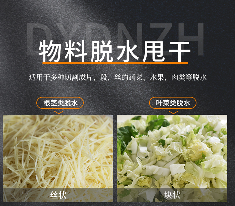 適用于葉菜類、根莖類、肉類等的快速脫水。