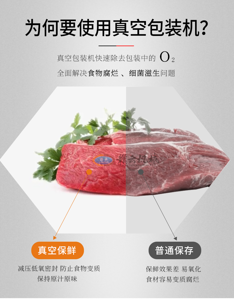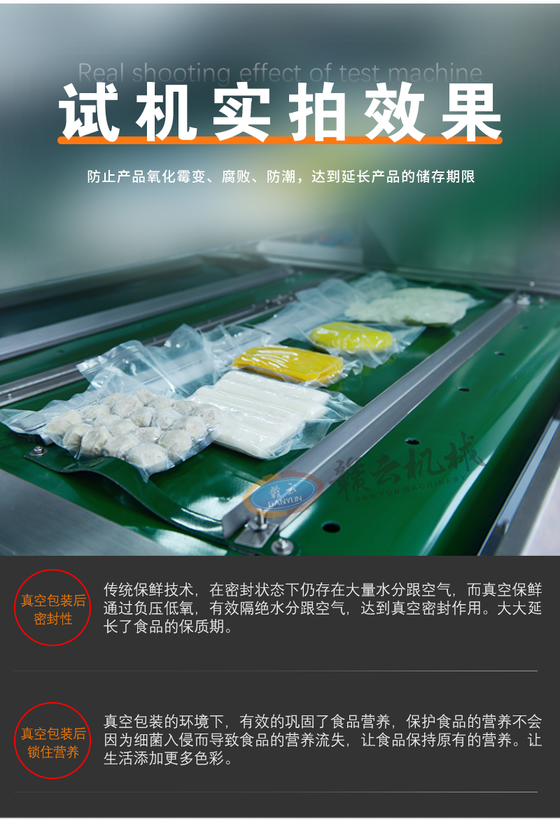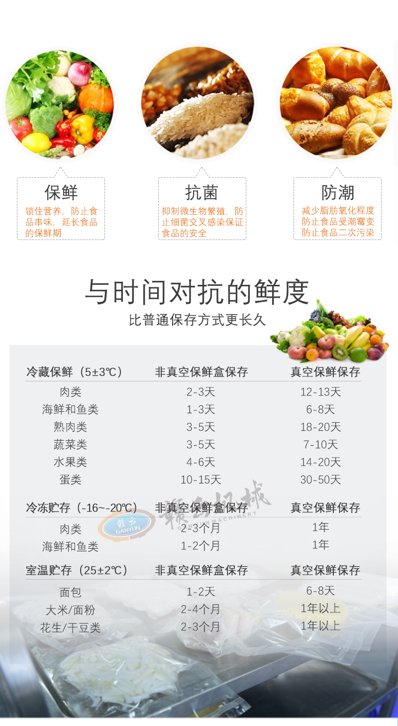 用于各種食品的抽取真空進行袋裝保鮮,防止食品氧化霉變、防潮,延長貨架期。