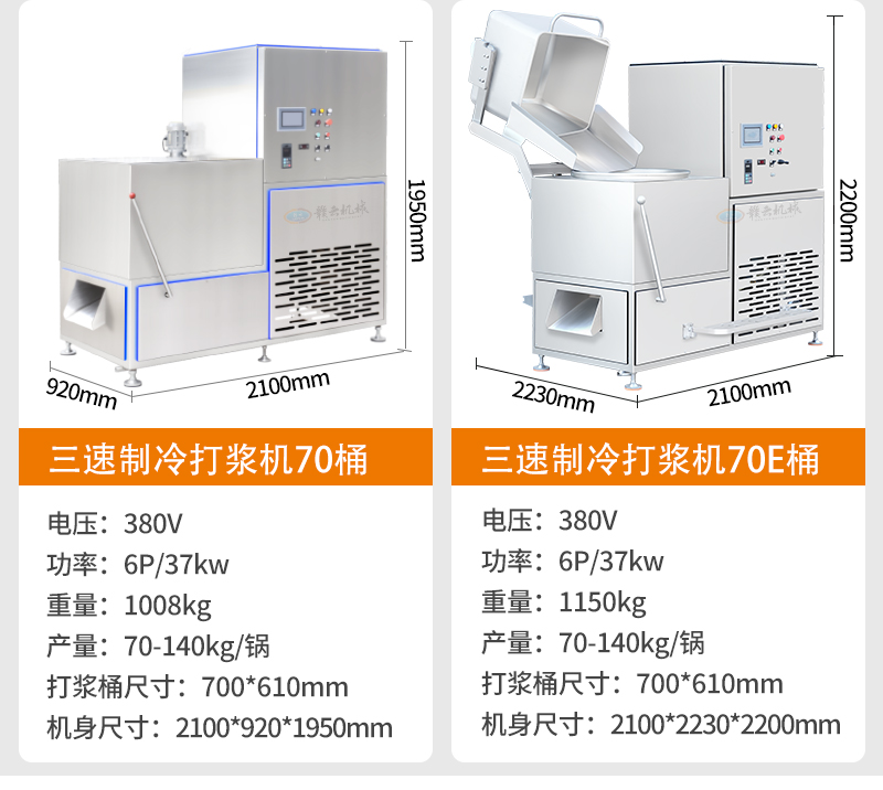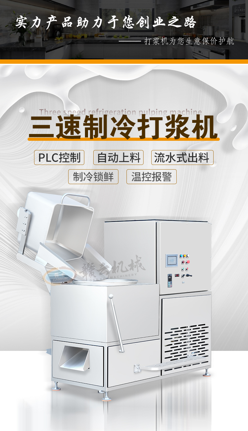 主頁-> 肉丸打漿機械->調速打漿機->70桶三速制冷打漿機(帶自動上料)