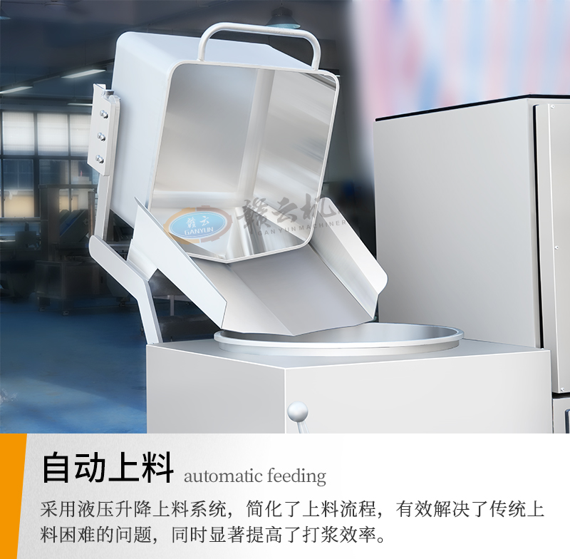 用于魚丸、牛肉丸、豬肉丸等食品的制冷打漿處理,集成自動上料、調速與制冷鎖鮮功能,適用于食品加工廠/肉丸食品廠等。
