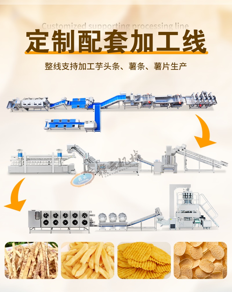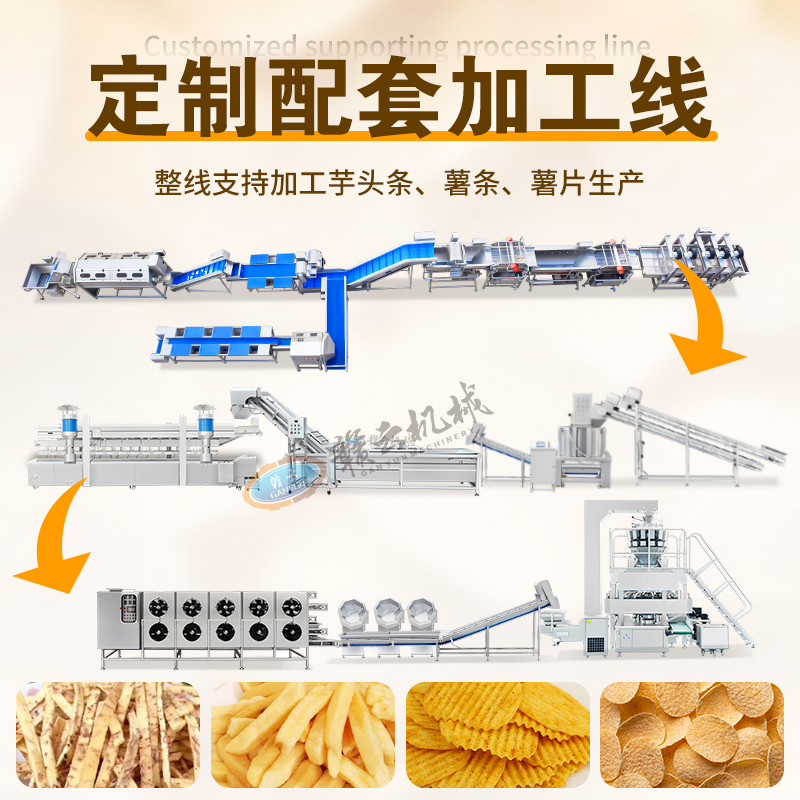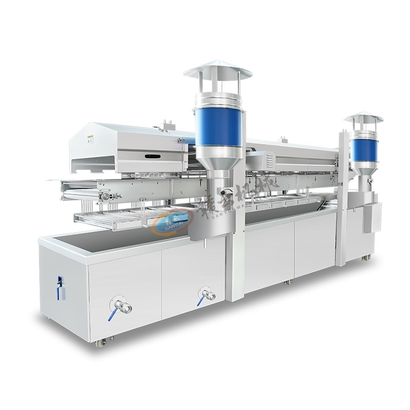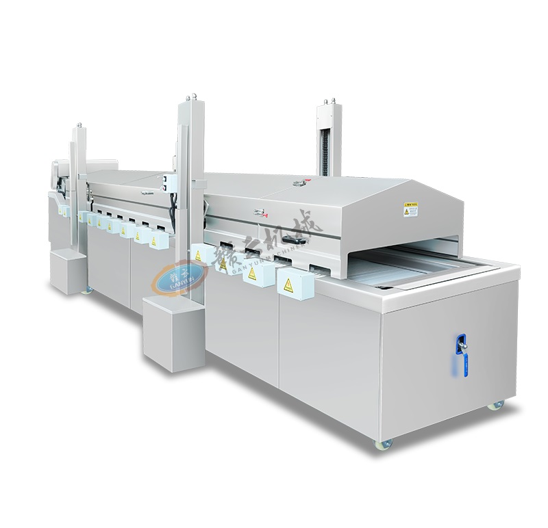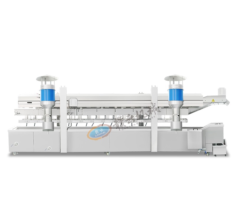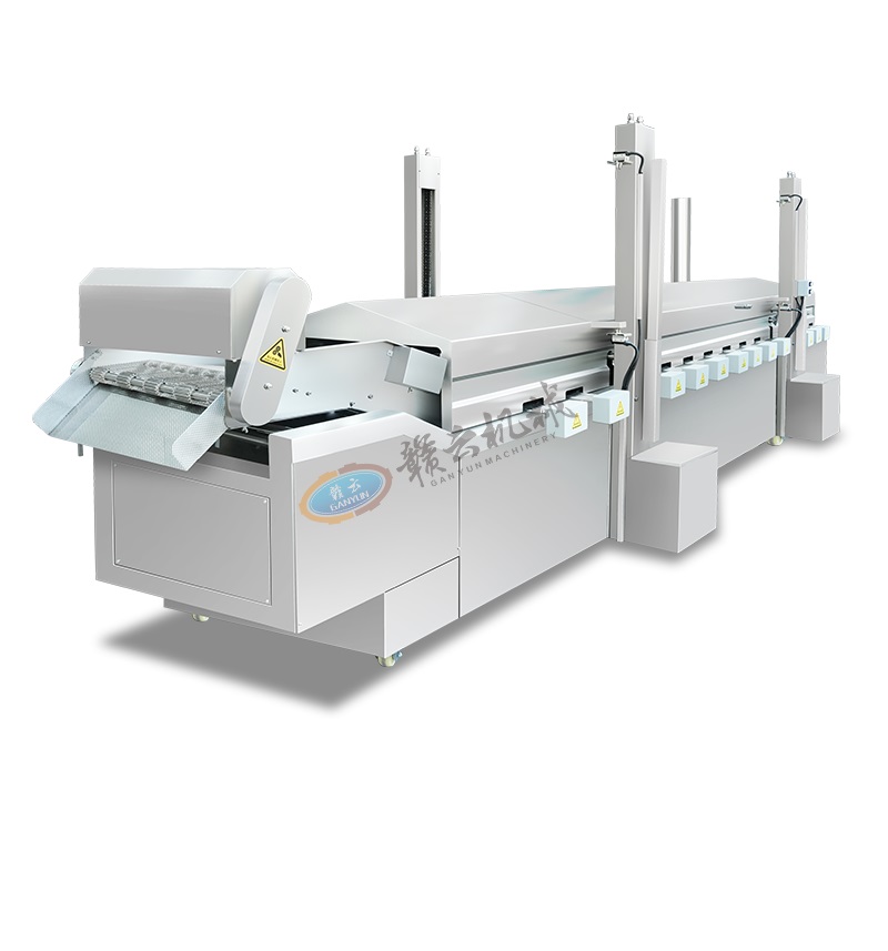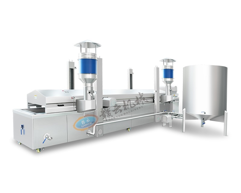 油炸生產線用于大規模連續油炸食品加工,將食品浸入熱油中快速烹制,達到外酥里嫩的效果。