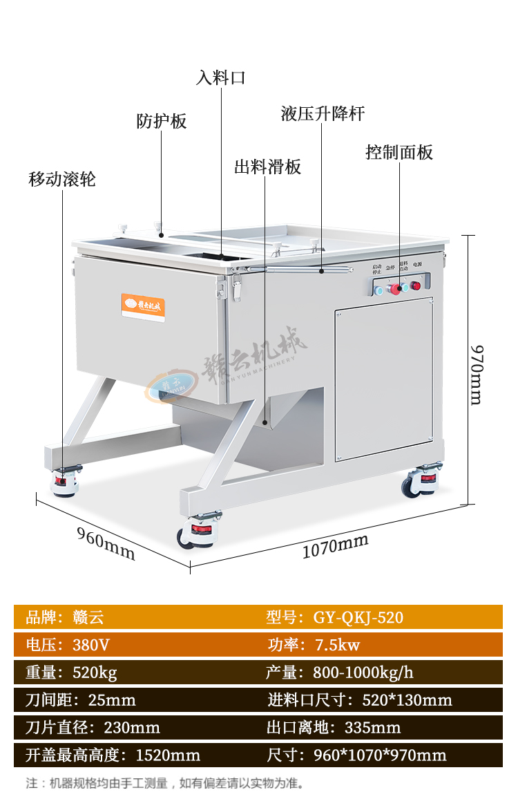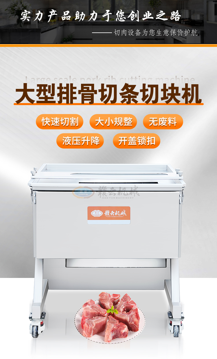 用于新鮮豬排骨、羊排、雞、鴨、魚、兔子、豬蹄等的切條切塊加工。