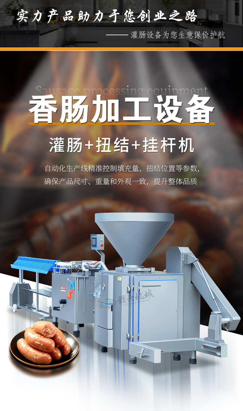 肉制品前處理->專用灌腸設(shè)備->灌腸扭結(jié)掛桿組合線 | |||||||