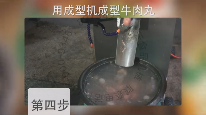 (4)制作完牛肉漿后接下來(lái)就是成型潮汕牛肉丸了,成型牛肉丸可以選擇一臺(tái)實(shí)心潮汕牛肉丸成型機(jī)或者一臺(tái)包心肉丸成型機(jī),可根據(jù)出料模板控制牛肉丸的大小,生成的牛肉丸大小均勻個(gè)體完整,成型速度快成產(chǎn)效率高。 觀看成型視頻