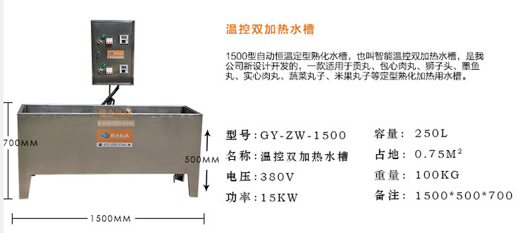 可以在成型機下面放一臺自動煮丸水槽來進行魚丸的自動熟化操作,至此魚丸商業機械化生產整個流水線就完成了,整個流水線的機械設備可以根據各位的產量選擇不同型號的機器來搭配實現滿足需求的同時成本最小化。